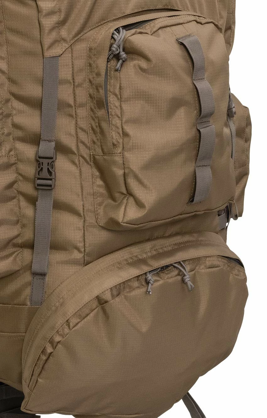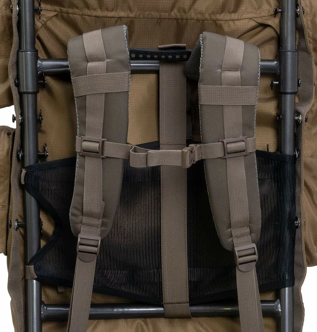 - Pockets: two side accessory hinged pockets, main, front, spotting scope pocket