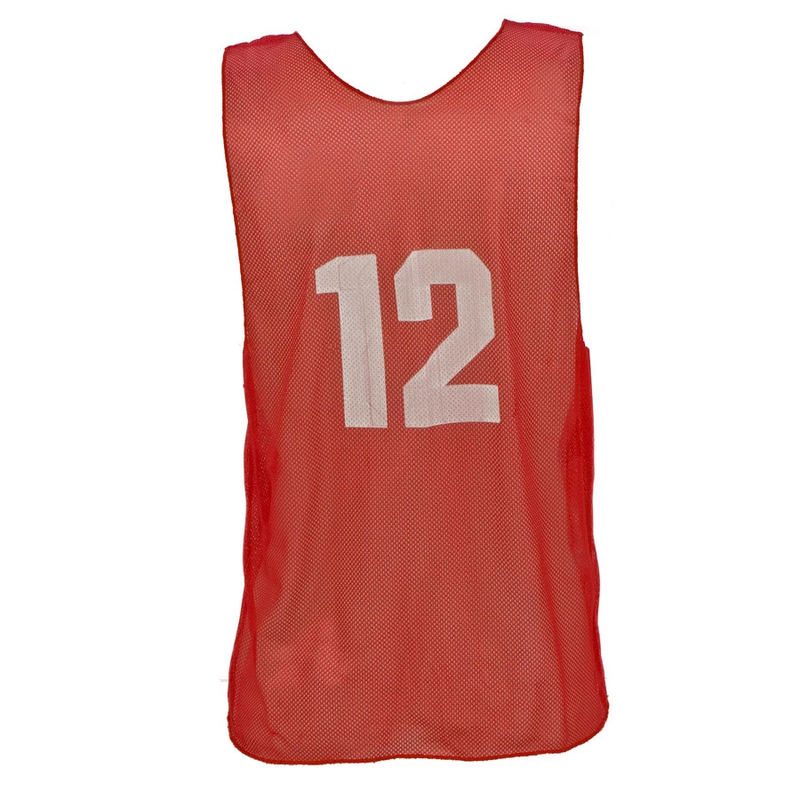 100% nylon micro mesh construction practice vests numbered 1 – 12. Straight-cut bottom with no elastic around armholes or waistband. Reinforced neck and armholes. Ideal for practices, scrimmages and more. Lightweight and breatheable fabric is perfect for hot days and stuffy gyms. Priced for one dozen vests.