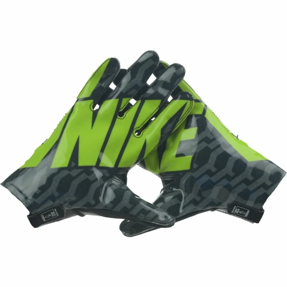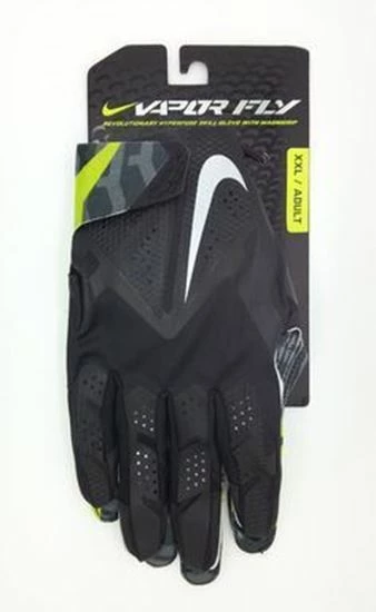 The Nike Vapor Fly skill position receiver gloves are revolutionary. They feature a magnigrip palm for catching those short, hard passes or for stretching out for the long “Hail Mary!” These gloves are sure to up your game.